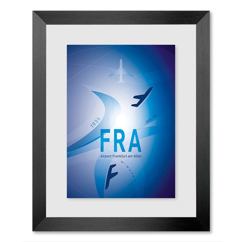 Wir produzieren Ihr IATA-Design auf dem von Ihnen ausgewählten Papier und rahmen es fachgerecht in Ihrer Wunschgröße. So erhalten Sie ein sofort aufhängbares Kunstwerk, das perfekt zu Ihrem Stil und Ihrem Raum passt.