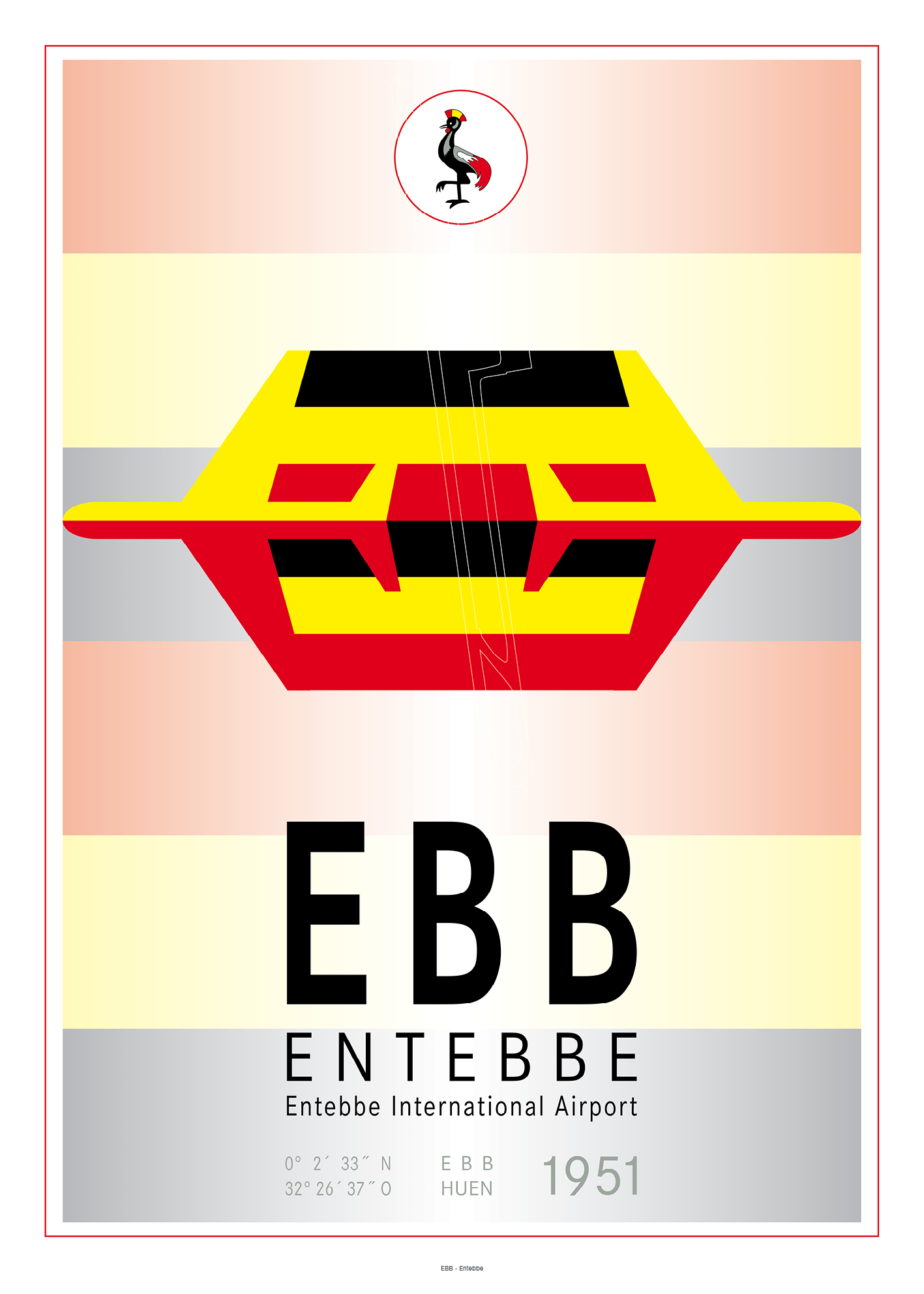 Die Kunstdrucke werden auf hochwertigem Designpapier im Format 50 cm × 70 cm gedruckt. Das Motiv selbst ist etwas kleiner, sodass ein weißer Rand bleibt, der einen eleganten Passepartout-Effekt erzeugt. Im unteren Randbereich steht in feiner, kleiner Schrift zusätzlich der Flughafennamen. Das Gesamtformat passt in nahezu alle gängigen Bilderrahmen.